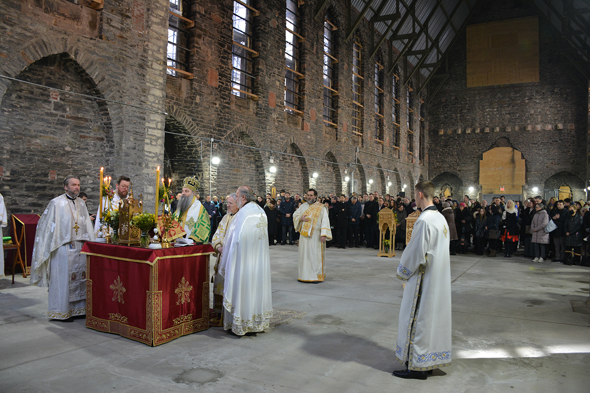 Στην πρώτη Θεία Λειτουργία, η οποία τελέστηκε ύστερα από επτά χρόνια στον Ιερό Ναό που υπέστη σοβαρές ζημιές από πυρκαγιά, που ξέσπασε το Πάσχα του 2016, με τον Μακαριώτατο Πατριάρχη συλλειτούργησαν ο Πανιερώτατος Επίσκοπος Καναδά κ. Μητροφάνης, ο Αρχιμανδρίτης Νικηφόρος (Μίλοβιτς), οι πρωθιερείς - σταυροφ, π. Βέλιμπορ Τζόμιτς και π. Ζιβόιν Γιακόβλιεβιτς, ο πρωτοπρ. Μίλαν Ντράγκοβιτς και ο πρωτοδιάκονος Ντράγκαν Ράντιτς.