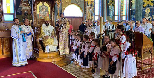 У току свете архијерејске Литургије дечаци и девојчице у ношњама су стајали уз Владичански трон, показујући тиме приврженост чистих дечјих душа својој светој Цркви.