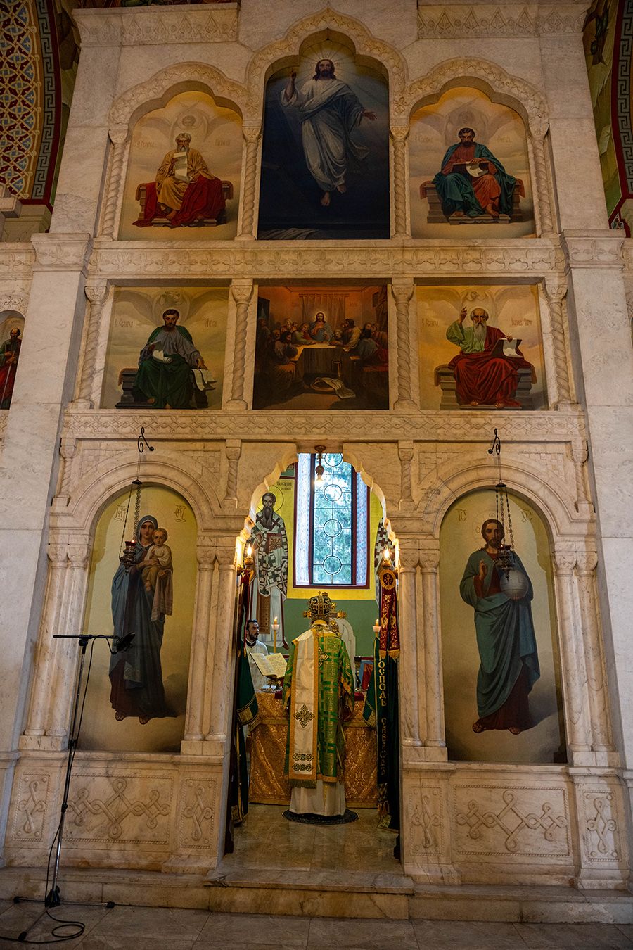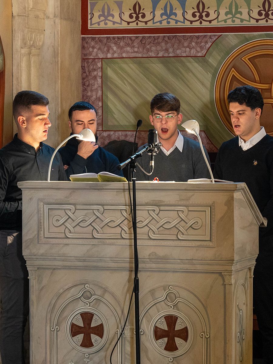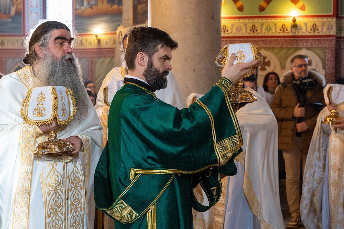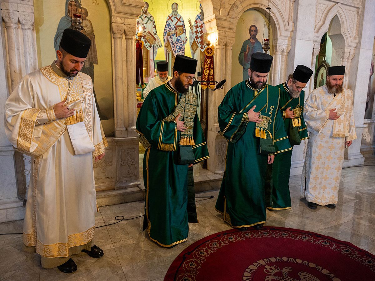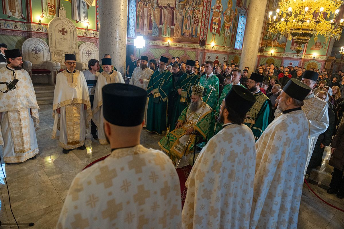 Предстојатељу Српске Православне Цркве су саслуживали: игуман Рафаило, јеромонах Марко и јерођакон Калистрат из манастира Подмаине; протонамесник Стеван Вукић, старешина храма; протојереји Јован Гардовић и Бранислав Јелић; јереји Оливер Суботић, Бранислав Кеџић и Александар Секулић; протођакони Радомир Врућинић и Драган Радић; ђакони Василије Перић и Ђорђе Петровић.
