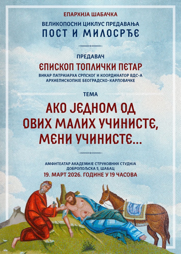 Српска Православна Епархија шабачка вас позива на великопосни циклус предавања „Пост и милосрђе”.