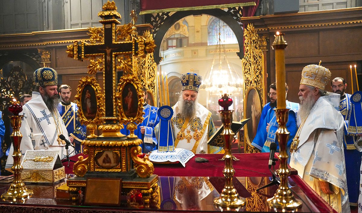 – То је појас који је Пресвета Богородица сама, својим рукама, исплела од камиље длаке и који је после Њеног уснућа предат апостолу Томи, а онда је кроз историју имао богато путешествије од Јерусалима, преко Кападокије, Цариграда, Бугарске, а у једном периоду је био и у Србији. Свети кнез Лазар је тај појас са делом Часног крста поклонио манастиру Ватопед, где се и до дана данашњег чува у олтару манастирске саборне цркве. И ево, имаћемо благослов да игуман манастира Ватопеда са још десетином монаха буде у Спасовданској литији, а неколико дана после тога у храму Светог Саве ћемо моћи сви да се поклонимо и помолимо Пресветој Богородици и примимо благослов Њеног појаса – речи су Његове Светости Патријарха српског г. Порфирија које су обрадовале благочестиви народа сабран 7. априла 2026. године, на Благовести, у Саборној цркви Светог архангела Михаила у Београду.