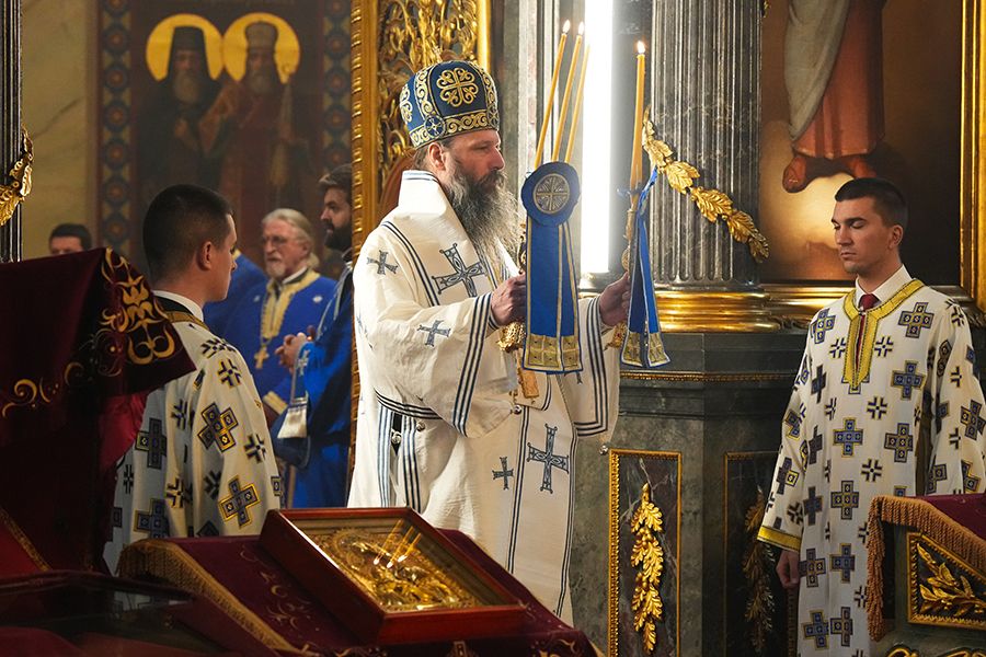 Током торжествене празничне Литургије, Његовој Светости су саслуживали: преосвећени викарни епископи новобрдски Иларион и јенопољски Никон, протојереји-ставрофори Петар Лукић и Бранко Топаловић, протонамесник Богољуб Остојић, јереји Славиша Поповић и Ивица Чаировић, протођакони Драган Радић, Радомир Врућинић и Дамјан Божић, ђакони Василије Перић, Николај Вуковић, Александар Ђуровић и Милорад Илић.
