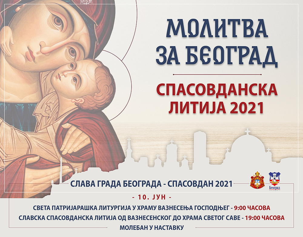 Свечана славска литија коју ће предводити Свјатјејши Патријарх г. Порфирије, са више стотина свештеника, члановима свих београдских црквених хорова и представницима различитих градских служби, кренуће у 19 часова од Вазнесењског храма улицама Кнеза Милоша и Краља Милана, преко Трга Славија и Булевара Ослобођења до храма Светог Саве на Врачару, где ће Светејши служити молебан за Београд и његове житеље. Позивамо благочестиви народ српске престонице да узме молитвеног учешћа у прослави славе Града Београда.