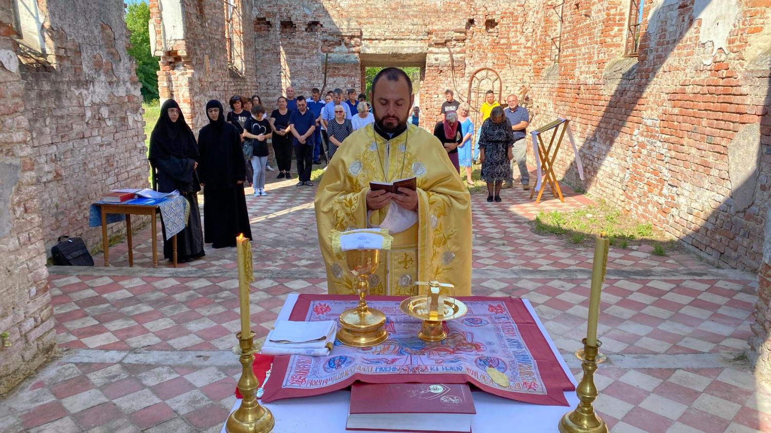 После Литургије, сви присутни су се упутили у још један храм у том селу – цркву ротонду у облику тролиста на сеоском гробљу, такође посвећену Светом великомученику Пантелејмону, где су у славу Божју а у част и спомен Светог Пантелејмона и Светог Климента освештани славски колач и жито.