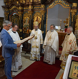 Литургијским сабрањем обележено је и 40 година свештеничке службе протојереја-ставрофора Војислава Галића, архијерејског заменика Будимске епархије. Рукоположен је 1981. године, на Преображење, у Сентандреји од стране блажене успомене Епископа бачког Никанора, дугогодишњег администратора Будимске епархије. Скоро читаву свештеничку службу прота Војислац је провео у Сентандреји, где је поред парохијске обављао и најзначајније функције у канцеларији Будимске епархије, најпре као секретар а потом и као архијерејски заменик. За вишедеценијски предани труд и рад на пољу очувања и унапређења црквеног живота у Мађарској, Епископ будимски г. Лукијан одликовао га је напрсним крстом 2007. године, а орденом Светог Саве одликовао га је блажене успомене Патријарх српски Иринеј приликом посете Будимској епархији 2019. године.