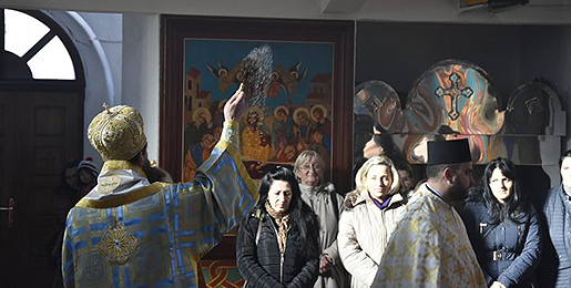 Саслуживали су протопрезвитер Бојан Митрић, протонамесник Јован Бањац и протођакон Немања Рељић. После заамвоне молитве, како налаже типик, извршено је велико освећење воде.