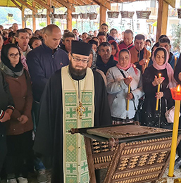 Након заамвоне молитве и благосиљања славских дарова, служен је молебан пред чудотворном иконом.