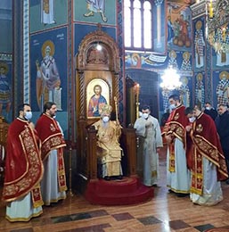Божанствену Литургију, уз присуство мноштва парохијана, предводио је Преосвећени Епископ шумадијски и администратор београдско-карловачки Г. Јован, уз саслужење братства Саборне цркве.