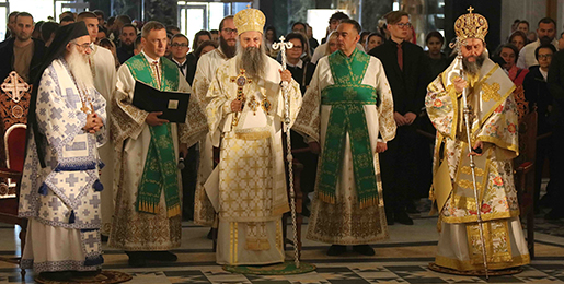 Браћо архијереји, браћо и сестре, благодаћу Божјом, благодаћу Духа Светога, и ове недеље смо имали догађај који је догађај Цркве као што је уосталом све у Цркви Христовој, без обзира да ли је видљиво сабору или не, увек свесаборни догађај Цркве. И онда када чинимо наизглед појединачне ствари, када правимо појединачне кораке, ако су у славу Божју, ако су у Духу Светоме, онда су то црквени, односно, саборни догађаји. И све оно што чинимо макар и више нас сабраних на неком месту, а није у духу Јеванђеља, није у заједници са Христом и у заједници са Духом Светим, онда је то аутономно и појединачно, онда то није црквено, независно од тога колики је број оних који учествују у таквим догађајима.