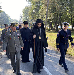 Свету архијерејску Литургију у војном храму служио је Преосвећени Епископ мохачки г. Дамаскин, уз саслужење војног свештенства Војске Србије и новосадског свештенства.
