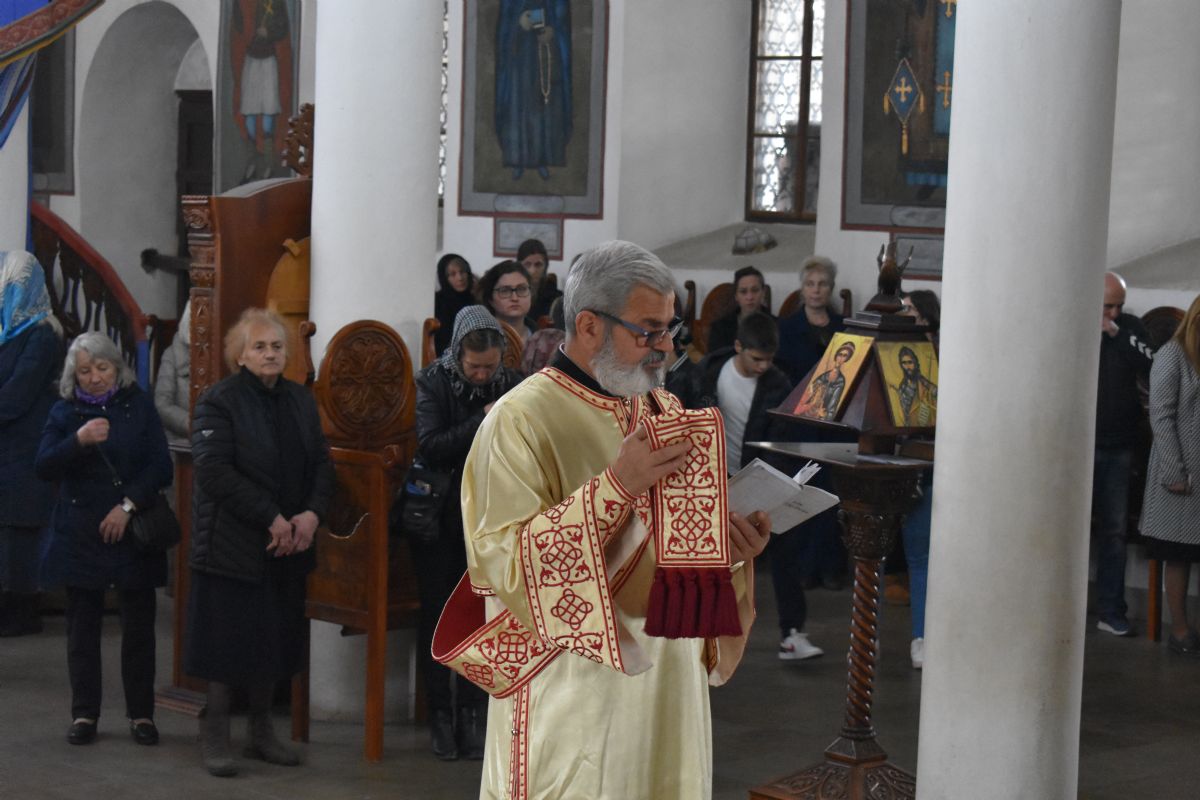 Саслуживали су протојереј-ставрофор Љубиша Гачић, протојереј-ставрофор Небојша Стојадиновић, ђакон Мицко Мицковић и ђакон Миодраг Наумовић. У току Литургије, поучном беседом обратио се протојереј-ставрофор Небојша Стојадиновић, тумачећи прочитани одељак из светог Јеванђеља, истичући радосну победу Господњег Васкрсења над смрћу.