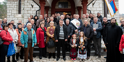Кум обновљеног храма је г. Александар Аврамовић из Источног Сарајева који је одликован архијерејском похвалницом. На крају свете Литургије владика Фотије је одликовао заслужне у обнови храма Покрова Пресвете Богородице у Тешњу, као и у градњи новога храма у Росуљама: орденом краља Драгутина г. Изудина Ахметлића, а архијерејском похвалницом гђу Јадранку Марковић и господу Александра Аврамовића, Ахмета Хујдура, Вахдета Хрвића, Фадила Ћостовића и Едина Јабанџића. Архијерејском похвалницом награђени су и Општина Тешањ и Дом културе Тешањ.