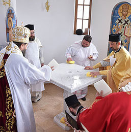 По доласку архијереја са светим моштима почело се приступати чину освећења храма током којег је Владика положио свете мошти у часни престо. Велелепност чина освећења огледа се у литијском опходу око храма са светим моштима, епсикопом и верним народом. После свете Литургије, Владика је верном народу одржао пригоду беседу у којој је истакао да је милошћу и помоћу Божјом освештао храм по жељи и труду самог ктитора Бојана Премовића и његове породице. Епископ је говорио о значају храм, јер је сваки храм један прозор ка Небу, и указао вернима да се угледају на свети пример великомученика Димитрија Солунског Чудотворца.