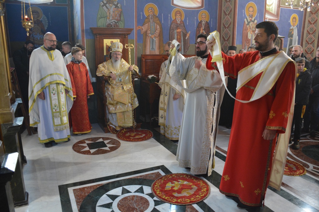 Епископу су саслуживали протојереј-ставрофор Љубиша Смиљковић, јеромонах Серафим (Ракановић), јереј Глигорије Марковић, јереј Милош Јелић, протођакон Иван Гашић и ђакон Бојан Миленовић. За литургијско благољепије био је задужен састав „Србски православни појци“.