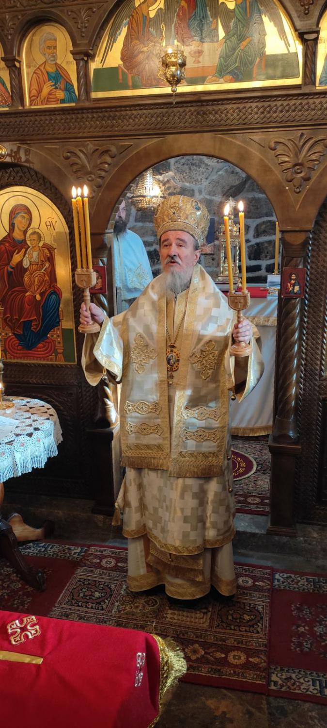 Честитајући ктоторску славу Преосвећени је рекао: – Сабрали смо се да прославимо Бога и да учествујемо за Његовом трпезом, што смо и учинили, и причестили се Божанском Храном, Телом и Крвљу Господа Христа. Ми се хранимо Божанском Храном слушајући Реч Божију али и тако што се подсећамо на оне који су такође били за Божанском Трпезом, који су нам показали пут живота, пут вере, који су нас у вери учвршћивали, и самим сећањем на њих ми се у вери учвршћујемо.