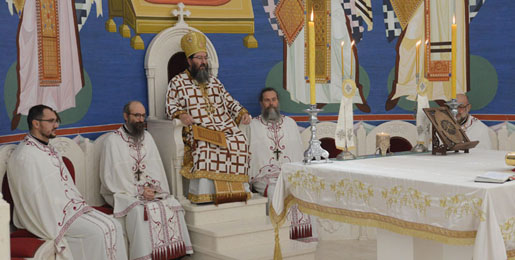 Уз саслуживање братства храма, молитвено учешће верног народа Божјег и торжествено појање, принета је бескрвна Жртва на живот и спасење света. Литургија као Светајна и Извор свих светотајинства Цркве, показала је пред очима присутних диван призор у коме из утробе свештенодејства порађа нове свештенослужитеље. Као онај који у име и на месту Христовом приноси Дарове на освећење, епископ Јустин је призвао благодат Божју посвећујући и рукополажући монаха Кипријана, сабрата манастира Вазнесења под Овчаром, у ђаконску службу.