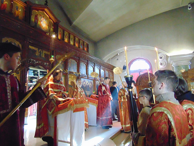 Торжественом Литургијом је началствовао архимандрит Михајло из манастира Јовања (Епархија ваљевска) уз саслужење протојереја Виталија Тарасјева, старешине цркве, протосинђела Саве (Епархија нишка), протојереја-ставрофора Маринка Радмила из Нирнберга, протојереја Небојше Тополића, старешине Богородичине цркве у Земуну, и јереја Миодрага Нешића из Епархије банатске.