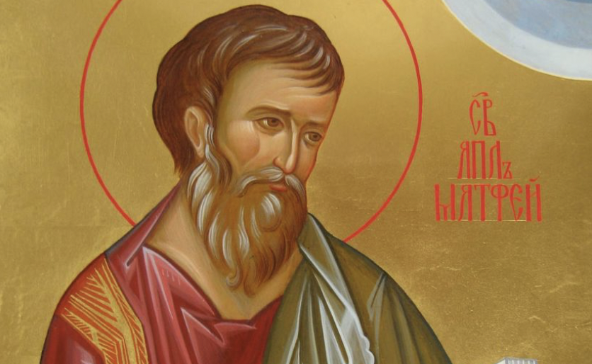 Беше Матеј, син Алфејев, најпре цариник (тј. закупац и скупљач пореза, или митар), и као таквога виде га Господ у Капернауму и позва: хајде за мном. И уставши отиде за њим (Мат. 9, 9). По том Матеј приреди дочек Господу у својој кући и ту даде повод, да Господ искаже неколике велике истине о своме доласку на земљу. По пријему Св. Духа Матеј свети проповедаше Јеванђеље у Партији, Мидији и Етиопији, земљи црначкој. У Етиопији постави за епископа некога Платона, следбеника свога, а он се повуче у молитвену самоћу у гору, где му се Господ јави. Крсти жену и сина кнеза те земље, због чега се кнез веома расрди, и посла једну стражу да доведе Матеја к њему на суд. Војници одоше и вратише се кнезу говорећи, да чуше глас Матејев али га никако не могоше очима видети. Тада кнез посла другу стражу. Када се и ова стража приближи апостолу, овога облиста светлост небеска, тако силна, да војници не могоше у њега гледати, но испуњени страхом бацише оружје и вратише се. Тада кнез сам пође. Приближивши се св. Матеју, засија од овога такав блесак, да кнез на једанпут ослепи. Но апостол свети беше милостива срца: он се помоли Богу, и кнез прогледа, – нажалост, прогледа само телесним очима али не и духовним. Он ухвати св. Матеја и стави га на љуте муке. Наиме, у два маха ложаше велики огањ на прсима његовим. Но сила Господња сачува га жива и неповређена. Тада се апостол помоли Богу и предаде дух свој Богу. Кнез нареди те и тело мучениково положише у оловни сандук и бацише у море. Светитељ се јави епископу Платону и рече му о своме телу и сандуку, где се налази. Епископ оде и изнесе сандук са телом Матејевим. Видевши ово ново чудо кнез се крсти и прими име Матеја. Затим остави кнез сву сујету светску и прими чин презвитерски, и богоугодно послужи цркви. Када умре Платон, јави се овоме Матеју апостол Матеј и усаветова га да се прими епископства. И тако он се прими епископства и би пастир добри многе године, док га Господ не позва у царство Своје бесмртно. Св. Матеј апостол написао је Јеванђеље на јеврејском језику, које је убрзо преведено на грчки, и на грчком до нас дошло, док се оно на јеврејском изгубило. За овога Јеванђелиста каже се, да никада није јео месо, него се хранио поврћем и воћем.