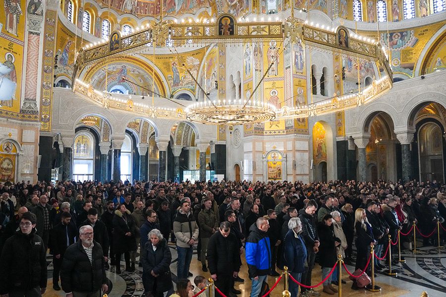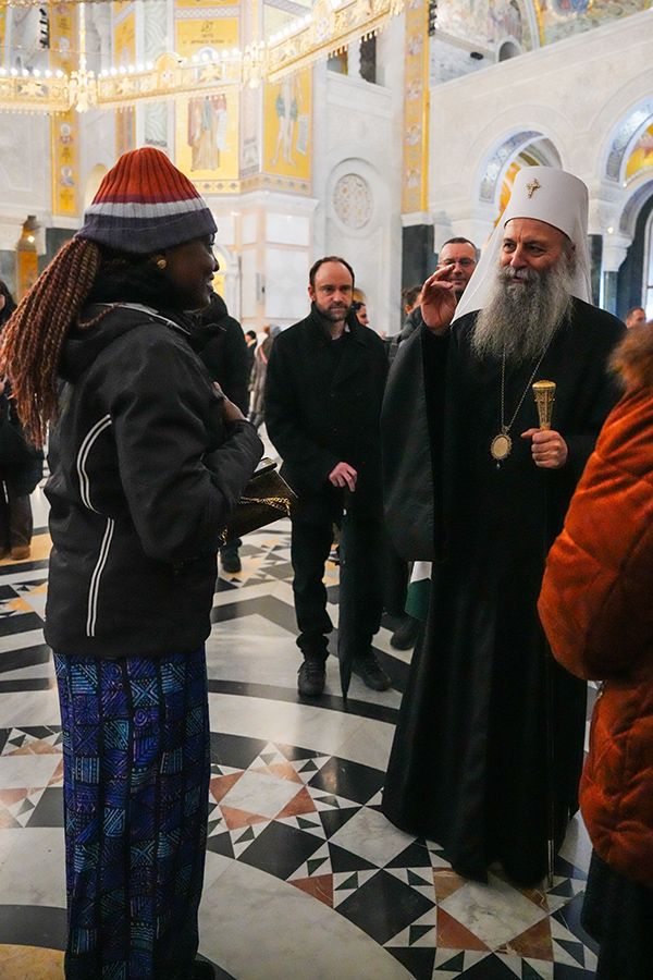 После свете Литургије, Његова Светост Патријарх српски г. Порфирије је одржао у крипти храма Светог Саве састанак са вероучитељима Архиепископије београдско-карловачке.