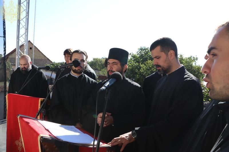 На светој архијерејској Литургији началствовао је Његовo Преосвештенство Епископ ваљевски г. Исихије, а саслуживали су Високопреосвећени Митрополит бачки г. Иринеј, преосвећена господа епископи осечкопољски и барањски Херувим, шабачки Јеротеј, мохачки Дамаскин, свештеници и ђакони Епархије бачке. Током малог входа на светој Литургији, Високопреосвећени владика Иринеј је одликовао правом ношења напрсног крста протојереје Мирослава Милића и Срђана Перића.