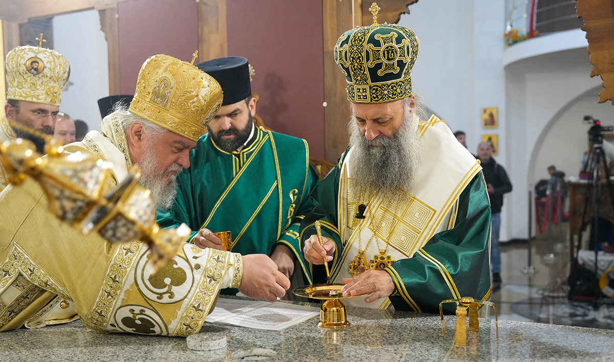 Његова Светост Патријарх српски г. Порфирије је началствовао 5. октобра 2025. године свечаним чином великог освећења храма Свете браће Кирила и Методија у Марибору, а затим и светом Литургијом у новоосвећеном Дому Божјем.