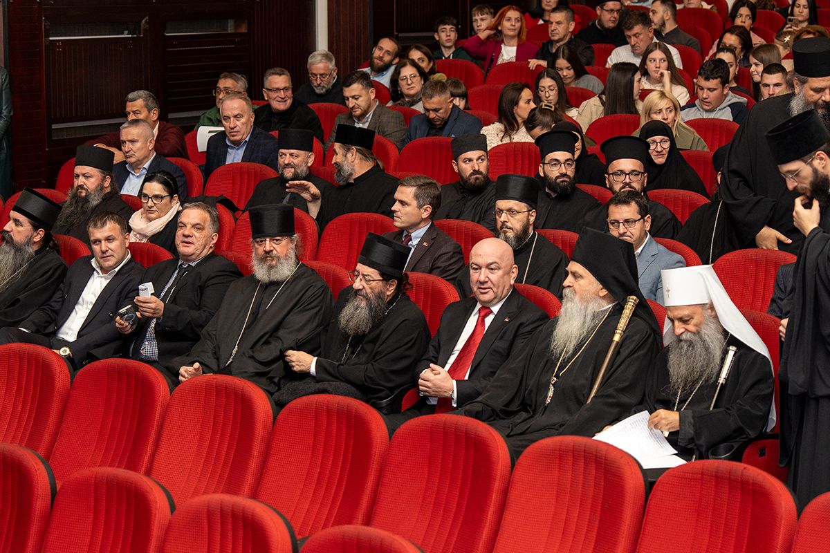 Многобројној публици и гостима - међу којима су били високопреосвећена и преосвећена господа архијереји: жички Јустин, шумадијски Јован, милешевски Атанасије, рашко-призренски Теодосије, крушевачки Давид, тимочки Иларион, нишки Арсеније, захумско-херцеговачки и стонско-приморски Димитрије, бихаћко-петровачки Сергије, ваљевски Исихије, шабачки Јеротеј и викарни мохачки Дамаскин; као и г. Дејан Вук Станковић, министар просвете; г. Драган Гламочић, министар пољопривреде, шумарства и водопривреде; г. Ненад Поповић, министар без портфеља; др Владимир Рогановић, директор Управе за сарадњу са црквама и верским заједницама - обратио се и г. Никола Селаковић, министар културе.