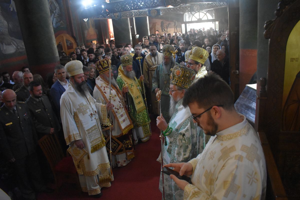 У току Литургије, на малом входу, Митрополит врањски г. Пахомије је одликовао, поводом педесет година од обнове Епархије врањске, више свештенике за њихову ревност служби у винограду Господњем. Правом ношења напрсног крста одликовани су протојереји Ненад Митић, Стојче Т. Петковић, Ранђел Величковић, Далибор Томић и Бобан Илић. Чином протојереја одликовани су протонамесници Ненад Тасић, Миодраг Драшко, Мирослав Петковић, Синиша Бошковић и Љубиша Врачевић. Достојанством протонамесника одликовани су јереји Александар Митровић, Немања Милић, Далибор Јовић, Александар Крстић, Александар Милошевић, Дејан Величковић, Душан Џонић, Срђан Ристић и Гојко Остојић. У чин протођакона унапређен је ђакон Миодраг Наумовић.