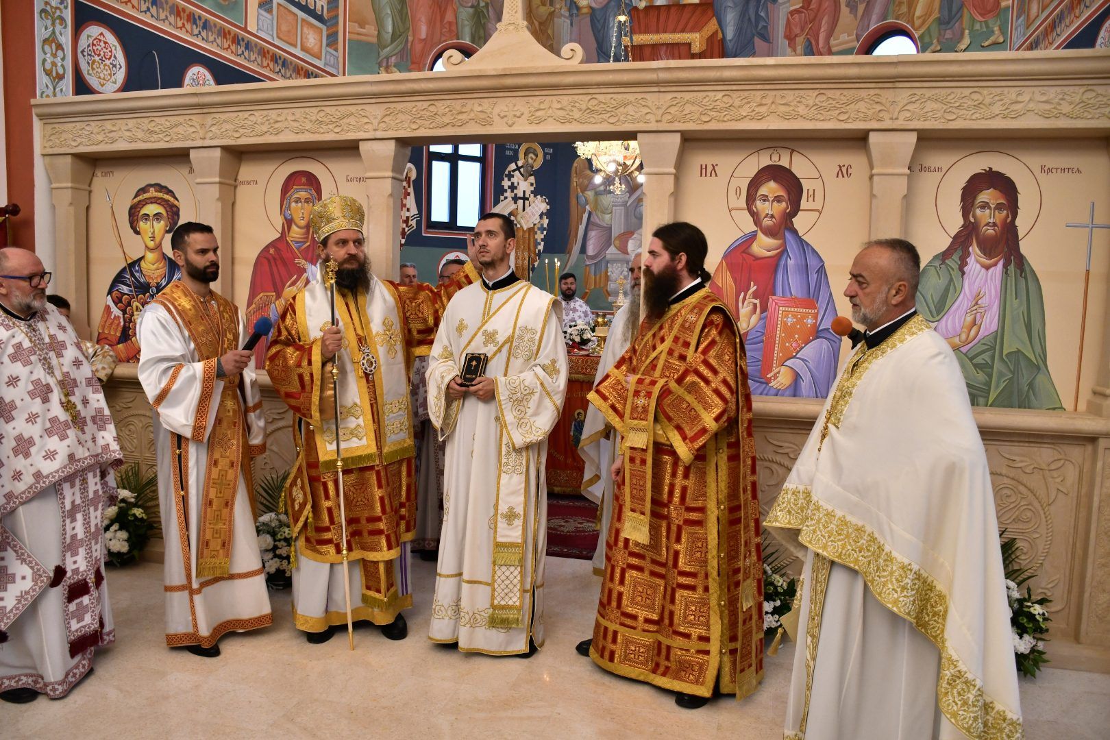 Поводм храмовне и градске славе, епископу Сергију су саслуживали: игуман Јеротеј (Влајковић); протопрезвитери-ставрофори Маринко Радмило, Петар Миловац, Мирослав Гаврић, Драган Шкалоња, Чедомир Арамбашић, Саво Јанковић, Радослав Станковић и Љубинко Аничић; протопрезвитер Дејан Зељкић, Жељко Ракита и Митар Керлец; и протођакон Немања Рељић.