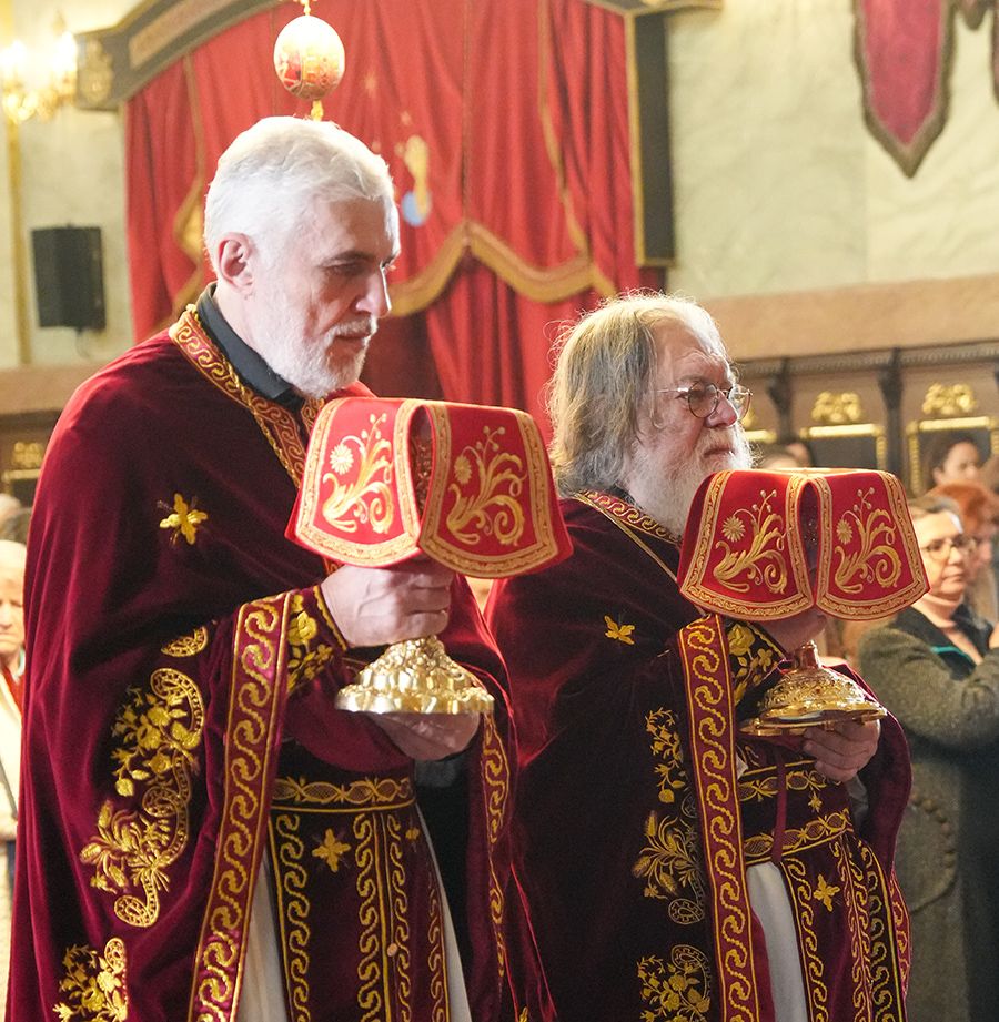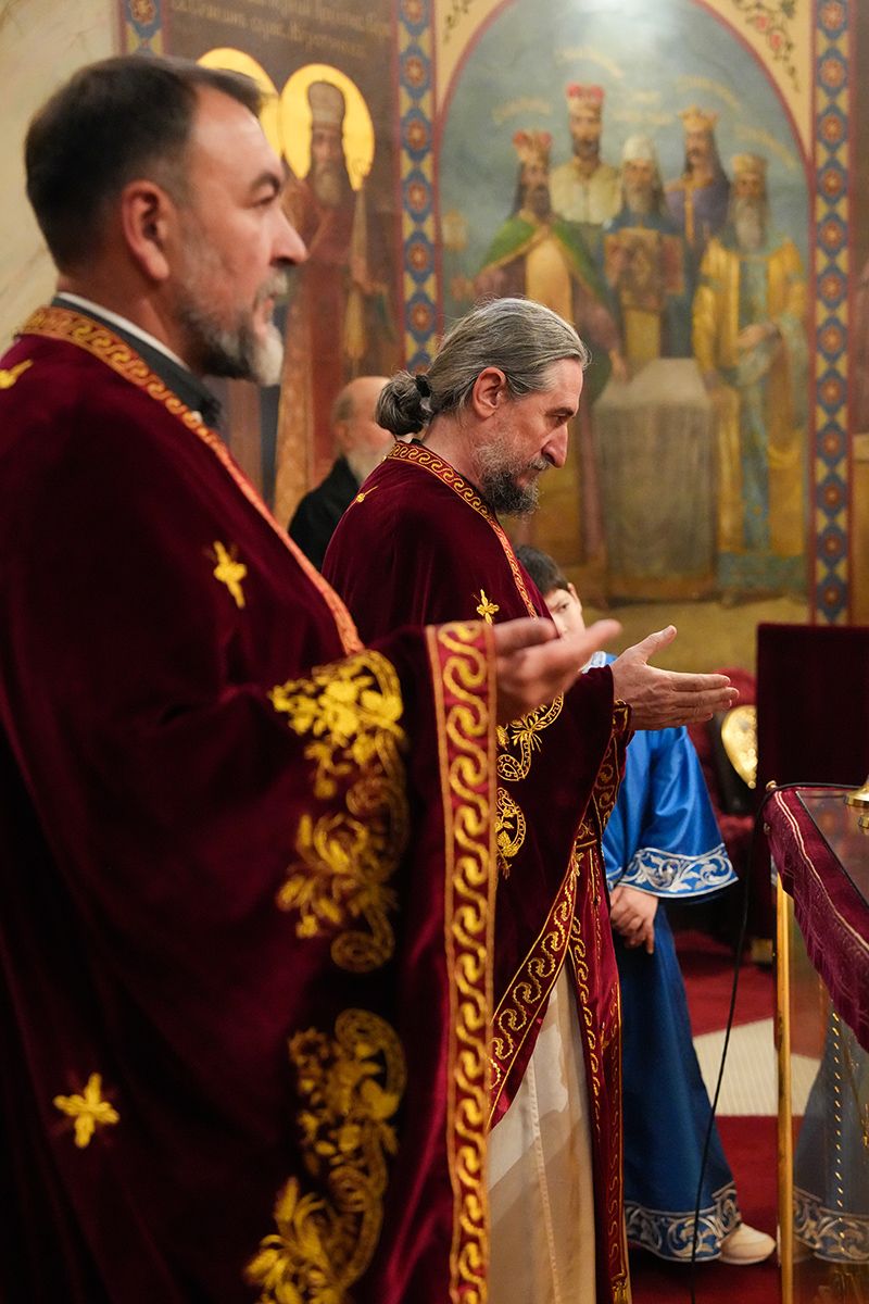 Уз молитвено учешће Високопреосвећеног Митрополита рашко-призренског г. Теодосија и многобројног верног народа, Његовој Светости Патријарху су саслуживали: архимандрит Данило (Љуботина); протојереји-ставрофори Горан Спајић, Бранко Топаловић и Петар Лукић; протојереј Славиша Поповић; презвитер Богољуб Остојић; протођакони Драган Радић и Радомир Врућинић; ђакони Василије Перић, Николај Вуковић, Александар Ђуровић, Предраг Маринковић и Лазар Ристић.