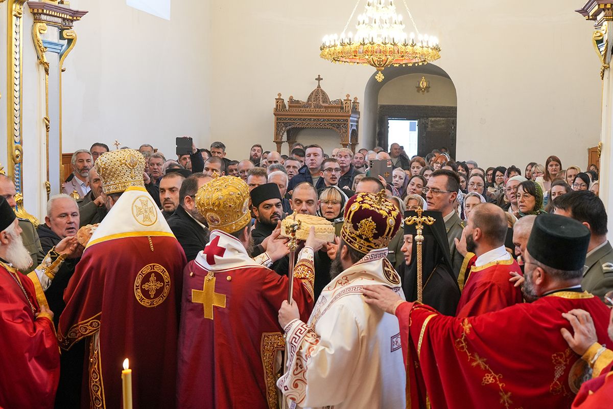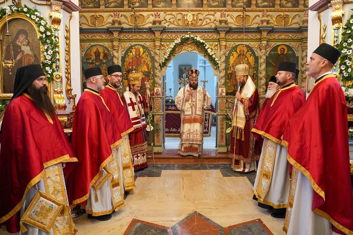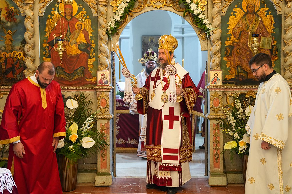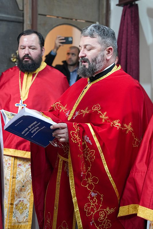 Са благословом и у молитвеном присуству Високопреосвећеног Митрополита сремског г. Василија, надлежног архипастира, светом Литургијом је началствовао Преосвећени Епископ осечкопољски и барањски г. Херувим, уз саслужење преосвећене господе епископа мохачког Дамаскина и липљанског и војног Доситеја. Удела у саслуживању узели су и: архимандрит Доситеј, духовник манастира Гргетега; протојереј-ставрофор Јован Милановић, ректор Карловачке богословије; протојереј Ђорђе Стојисављевић, шеф Кабинета Патријарха српског; игум Јустин, духовник манастира Беочина; протојереј Предраг Докић, главни војни свештеник; уз војно свештенство, монаштво Епархије сремске и верни народ.