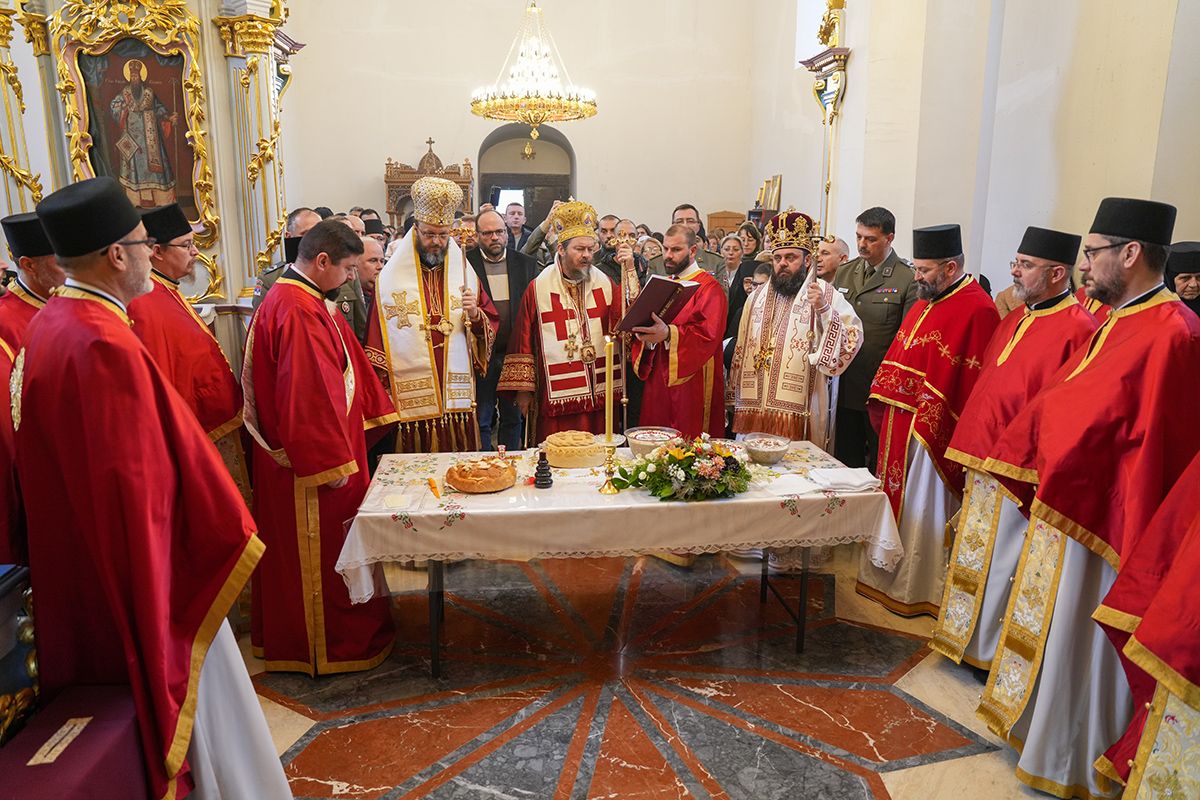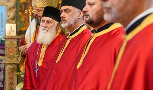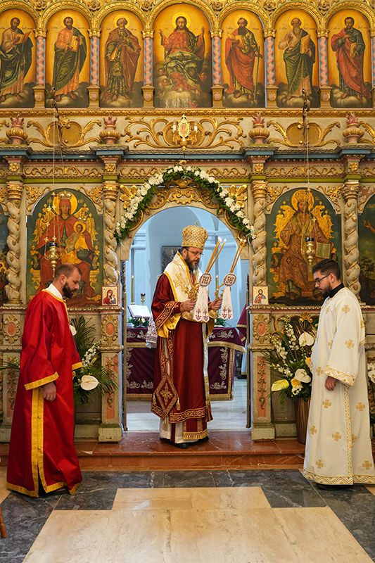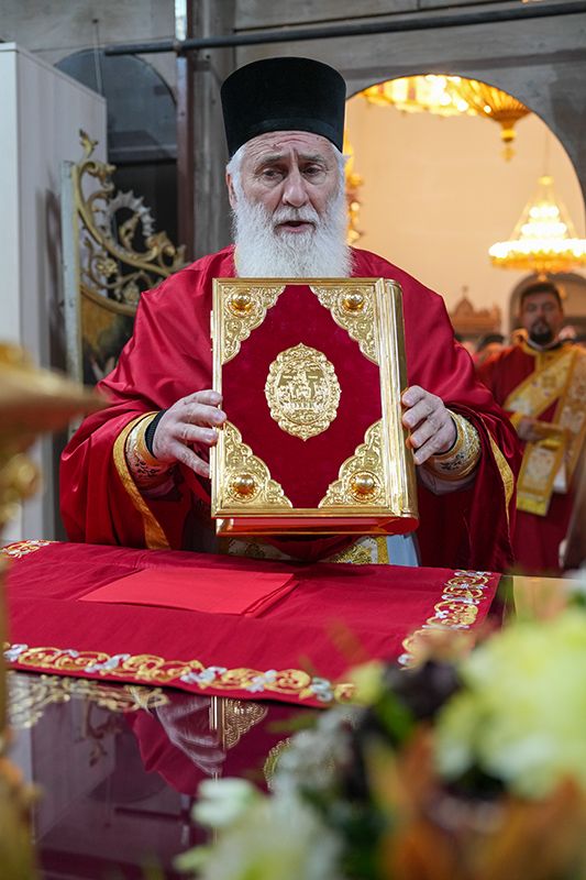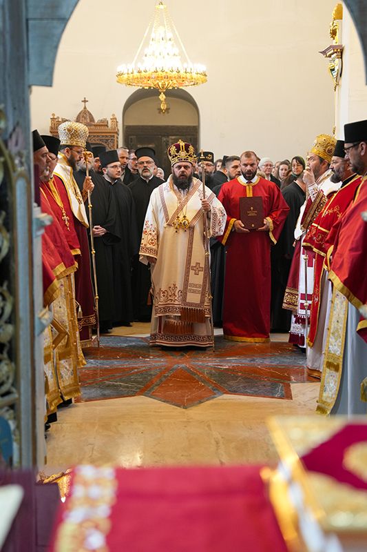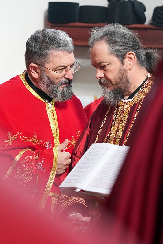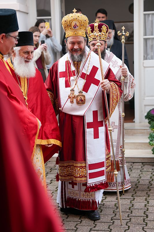 Са благословом и у молитвеном присуству Високопреосвећеног Митрополита сремског г. Василија, надлежног архипастира, светом Литургијом је началствовао Преосвећени Епископ осечкопољски и барањски г. Херувим, уз саслужење преосвећене господе епископа мохачког Дамаскина и липљанског и војног Доситеја. Удела у саслуживању узели су и: архимандрит Доситеј, духовник манастира Гргетега; протојереј-ставрофор Јован Милановић, ректор Карловачке богословије; протојереј Ђорђе Стојисављевић, шеф Кабинета Патријарха српског; игум Јустин, духовник манастира Беочина; протојереј Предраг Докић, главни војни свештеник; уз војно свештенство, монаштво Епархије сремске и верни народ.