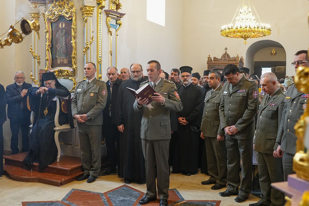 На празник Светог краља Милутина и Светог Варнаве Хвостанског, 12. новембра 2025. године, у Световазнесенском храму манастира Беочин литургијски је прослављен небески патрон Верске службе Војске Србије.