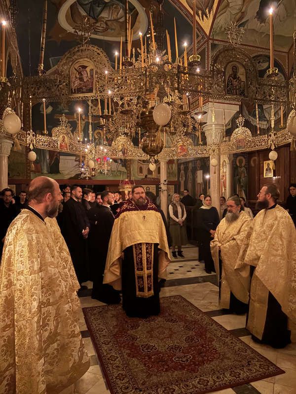 Тим поводом, прослава је започела празничним бденијем у факултетском параклису Светог Јована Богослова 5. фебруара 2026. године, којим је предстојао архимандрит Нектарије, главни секретар Светог Архијерејског Синода. Саслуживали су: протопрезвитер-ставрофор др Ненад Тупеша, професор Православног богословског факултета „Свети Василије Острошки“ у Фочи; архимандрит Гаврило, настојатељ манастира Озрен; протопрезвитер проф. др Србољуб Убипариповић, декан Православног богословског факултета у Београду; јеромонах др Андроник (Дунаев); протонамесник Бориша Шањић; архиђакон асс. Јустин Живанић, сабрат Светоарханелског манастира у Ковиљу; ђакон доцент др Никола Лукић.