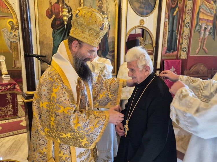 По завршетку Литургије, Високопреосвећени Митрополит је честитао протојереју Томиславу Станковићу одликовање, благодарећи му на вишегодишњем несебичном труду који улаже у живот Цркве. Митрополит је, такође, даривао напрсни крст протојереју-ставрофору Боривоју Радојичићу (више ОВДЕ) честитајући му седамдесетогодишњицу свештенике службе.