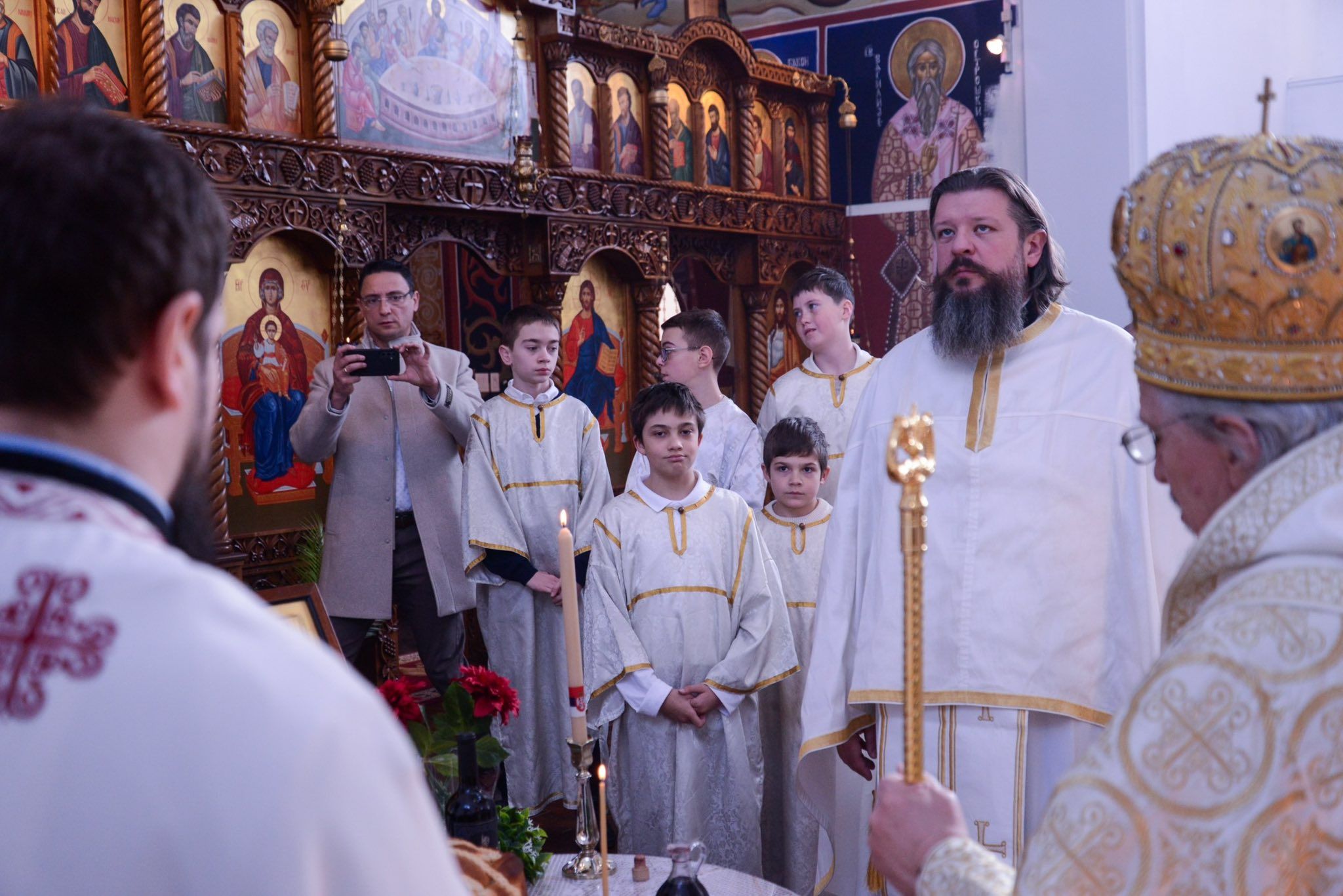 Светом архијерејском Литургијом је началствовао Његово Високопреосвештенство Митрополит канадски г. Митрофан, који је, вођен пастирском љубављу и не штедећи себе, изволео да и у оваквим временским условима настави своје архипастирске посете. Високопреосвећеном су саслуживали протопрезвитер Јован Марјанац, ђакон Петар Марјановић, као и свештеник Душко Марковић, парох и домаћин свечаног сабрања.