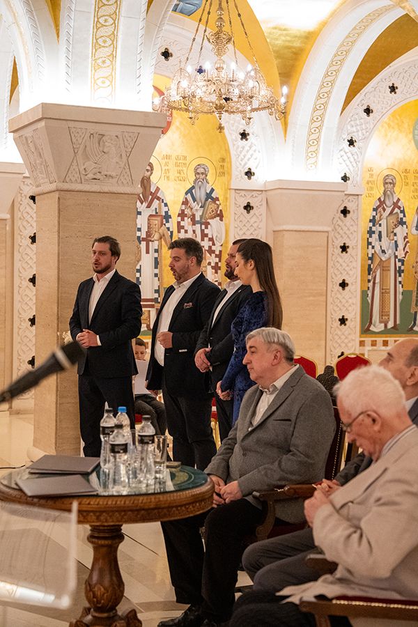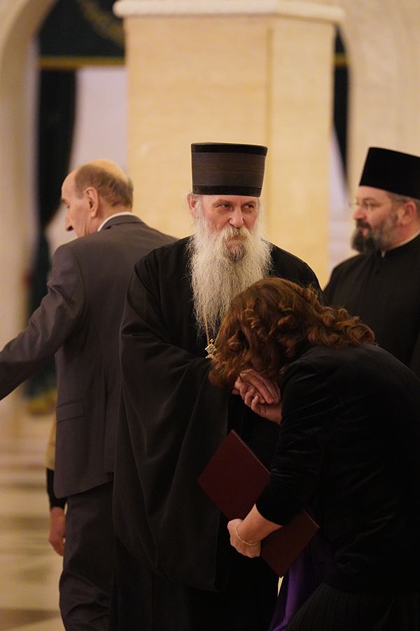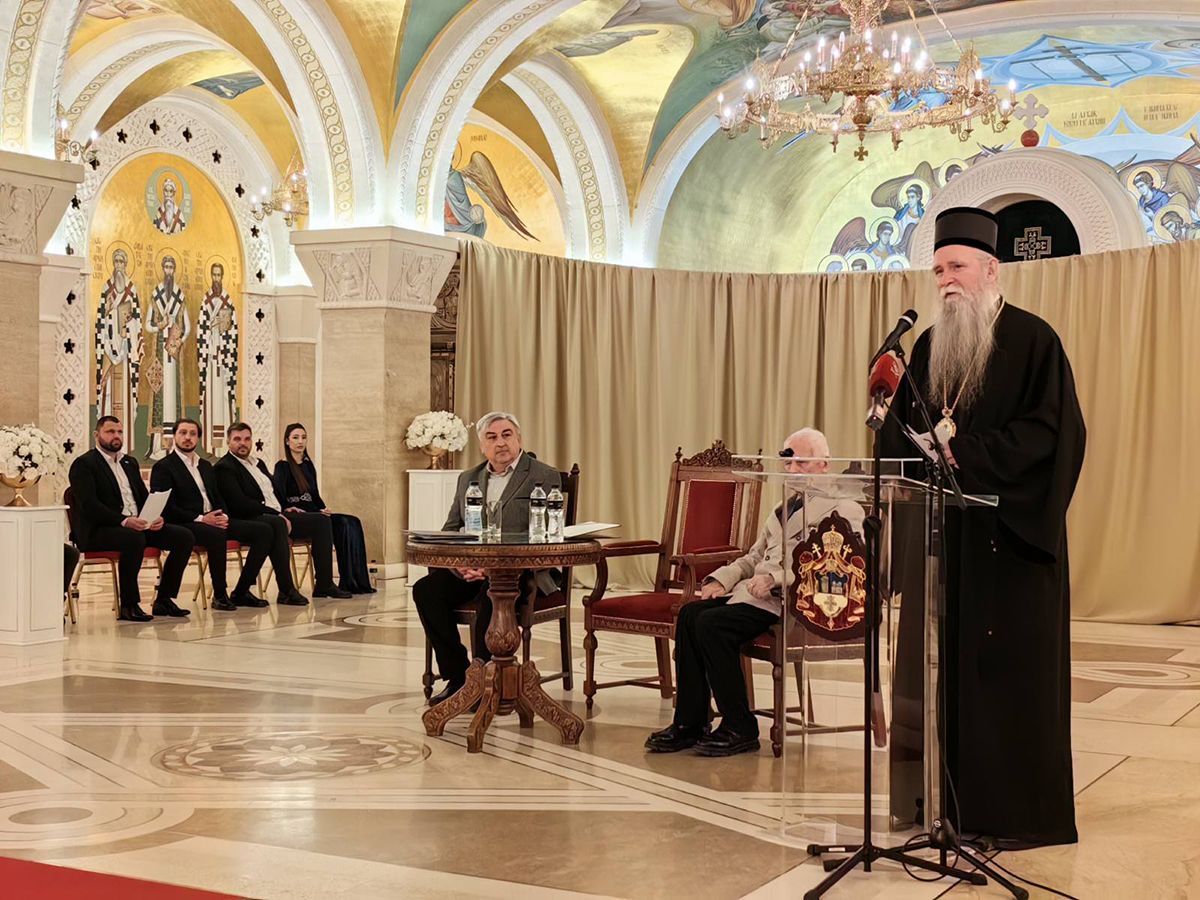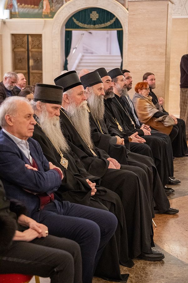 Његова Светост Патријарх српски г. Порфирије је присуствовао синоћ, 17. фебруара 2026. године, у крипти храма Светог Саве на Врачару, заједно са високопреосвећеним митрополитом црногорско-приморским г. Јоаникијем и будимљанско-никшићким г. Методијем и преосвећеним епископима славонским и пакрачким г. Јованом и моравичким г. Тихоном, свечаном проглашењу добитника књижевне награде Извиискра Његошева.