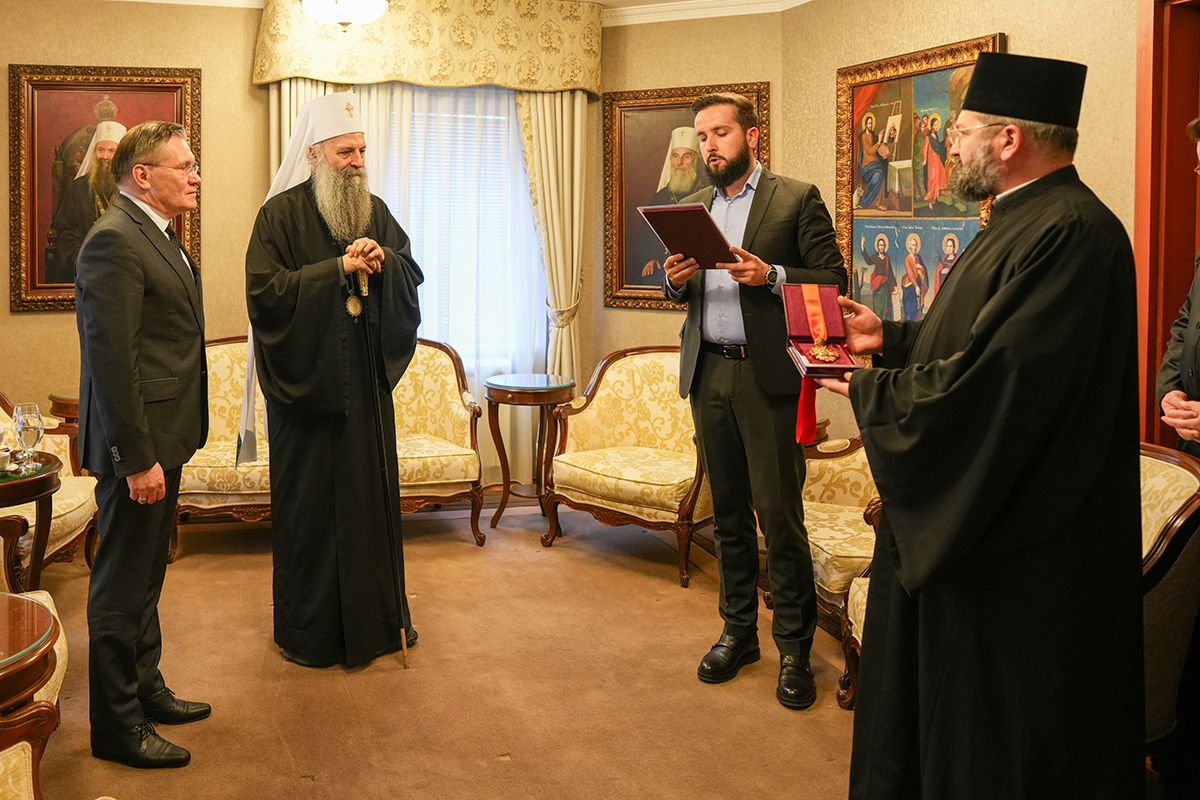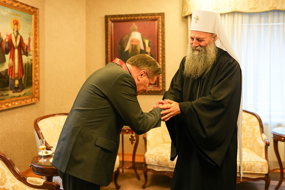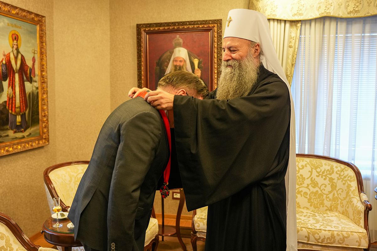 Патријарх Порфирије уручио орден Светог кнеза Лазара г. Алексеју Лихачову, великом добротвору Српске Цркве
