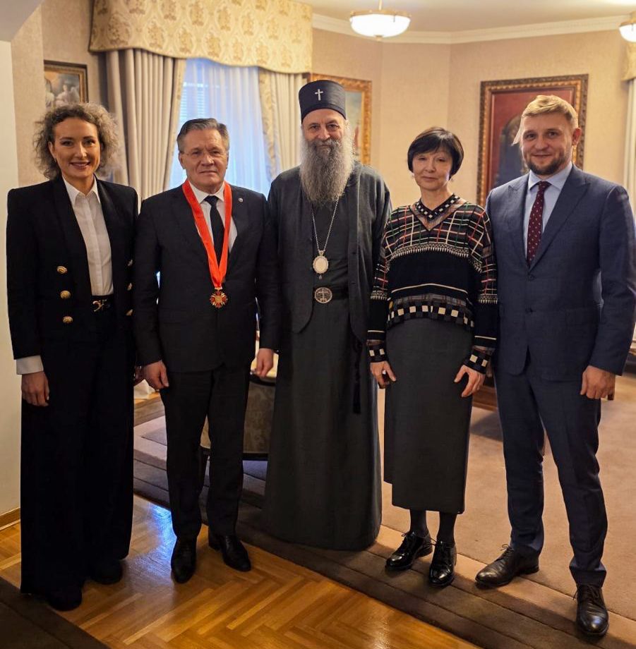 Његова Светост Патријарх српски г. Порфирије је уручио 21. фебруара 2026. године на свечаном пријему у Светосавском дому на Врачару орден Светог кнеза Лазара г. Алексеју Евгенијевичу Лихачову, директору државне корпорације Росатом и директору Фондације Хришћанско наслеђе и култура.