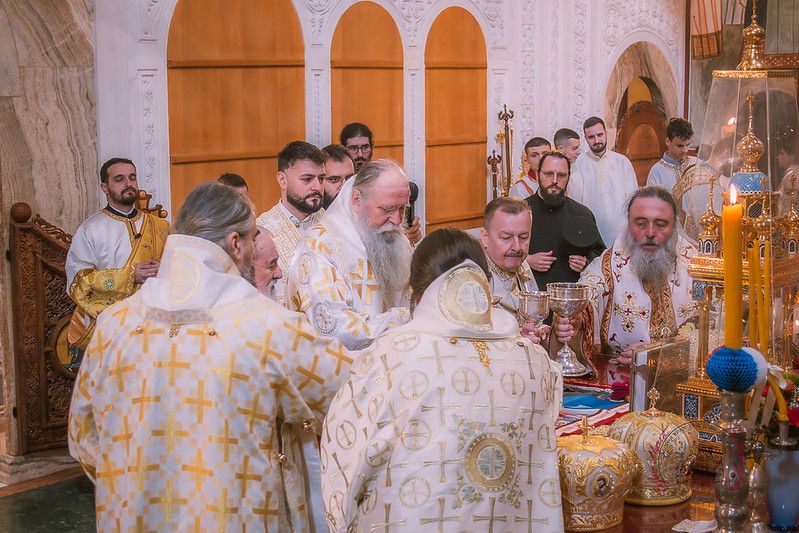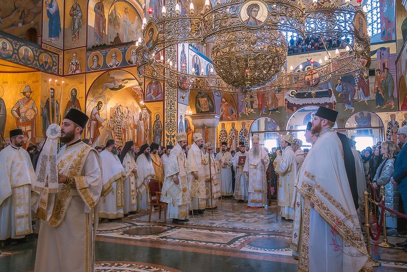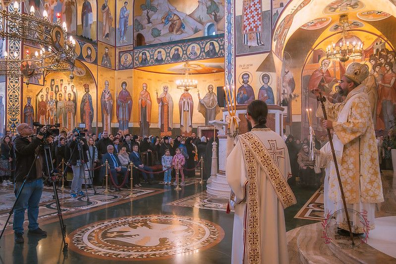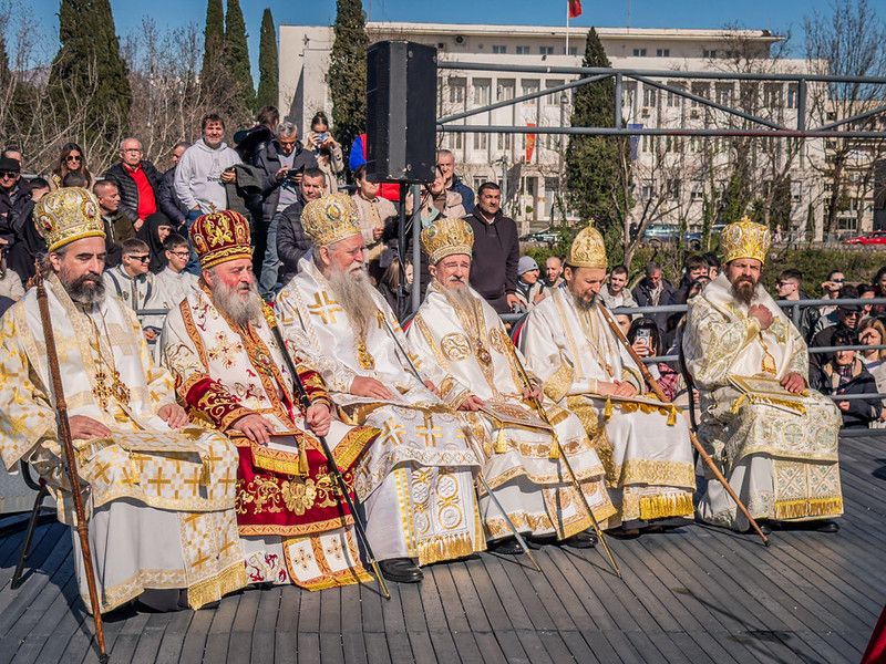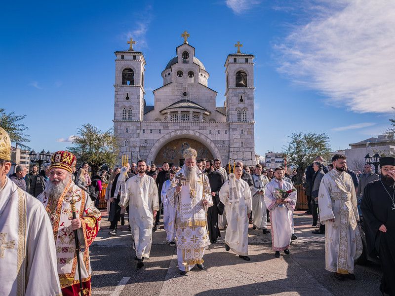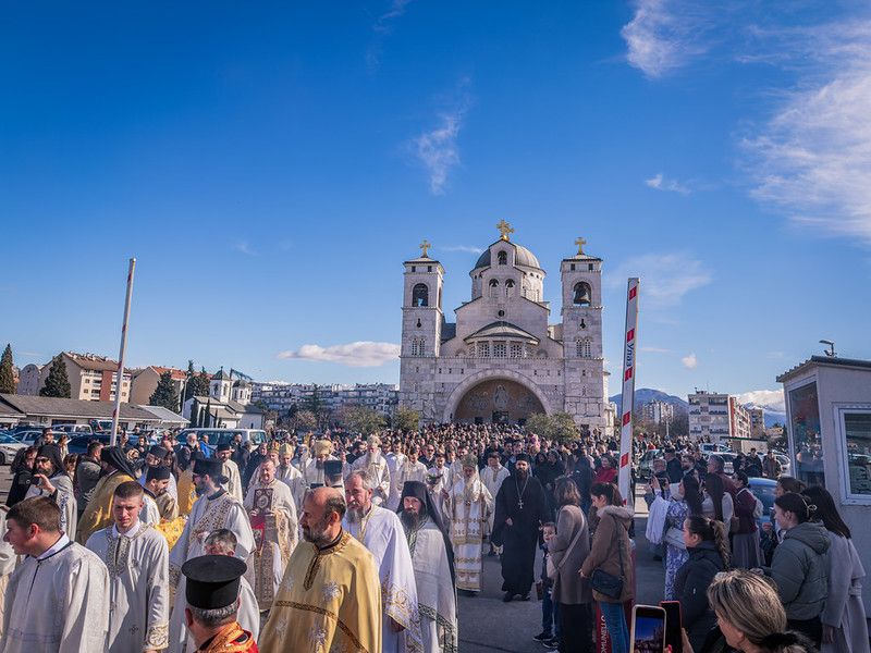 Свету Литургију у Саборном храму Христовог Васкрсења служио је Његово Високопреосвештенство Митрополит црногорско-приморски г. Јоаникије уз саслужење: високопреосвећене господе митрополита милешевског Атанасија, захумско-херцеговачког и стонско-приморског Димитрија, будимљанско-никшићког Методија и преосвећене господе епископа делчевско-каменичког Марка из Македонске Православне Цркве - Охридске Архиепиксопије и викарног диоклијског Пајсија; бројног свештенства, монаштва и верног народа.
