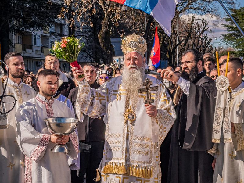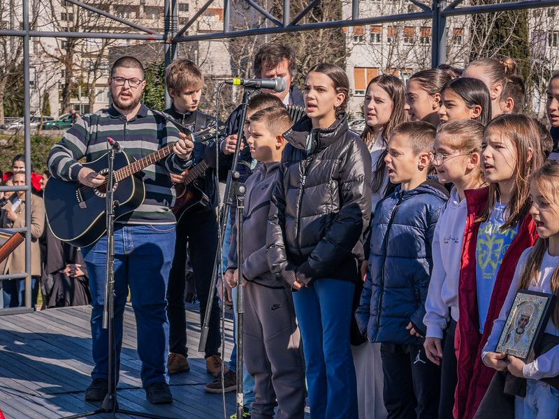 После свете Литургије, архијереји, свештенство, монаштво и више хиљада верника, родитеља и деце кренули су у традиционални крсни ход од Саборног храма до Немањиног града, где су освештани славски дарови. У обраћању на Немањином граду митрополит Јоаникије је рекао да свака литија има дубљи смисао: она је наставак оне прве литије на Цвети у Јерусалиму и символ пута ка Небеском граду, „вечном Јерусалиму који је свима нама мати“. Тај пут, нагласио је, јесте пут Христов – пут Светог Симеона и Светог Саве, Светог Василија Острошког и Светог Петра Цетињског – пут љубави, жртве и саборности. Митрополит је подсетио да се истог дана славио и празник Светог Теодора Стратилата, чији се део моштију чува у Саборном храму Христовог Васкрсења, а онда благосиљао присутни народ и град Подгорицу.