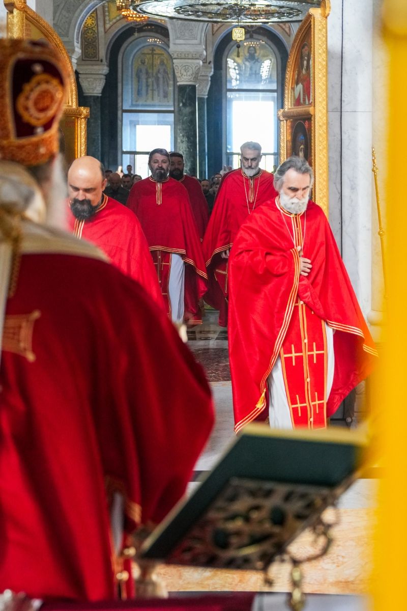 Предстојатељу Српске Православне Цркве Патријарху Порфирију су саслуживали: протојереји-ставрофори Радивоје Панић и Димитрије Касапис; протојереј Ђорђе Стојисављевић, шеф Кабинета Патријарха српског; протојереји Ненад Јовановић, Драган Шовљански и Бранислав Кличковић; јереји Далибор Стојадиновић и Мирослав Васић; протођакони Драган Радић, Радомир Врућинић и Младен Ковачевић; ђакони Василије Перић и Владимир Јовић.