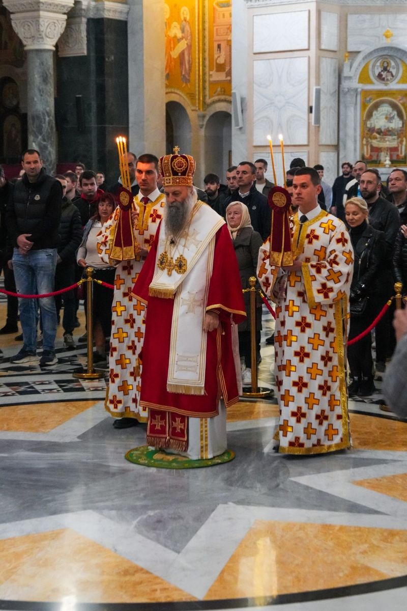 — Ова недеља, од понедељка до недеље посвећена је одређеним догађајима који јесу историјске чињенице али који имају и суштинску, нераскидиву везу са нашим животима и дају смисао нашим животима. Тако данас, на Велики четвртак ми се литургијски, молитвено сећамо многих догађаја који су се збили тог дана, а имају везе и са нашим животима, са нашим спасењем… Сећамо се да је Господ на данашњи дан установио Евхаристију, т.ј. свету Литургију као причешћивање хлебом и вином који су тело и крв Христова. Установио је Евхаристију, установио је Литургију, показујући да је то простор, да је то место у којем се сусрећемо са Господом, у којем исповедамо Господа, у којем га препознајемо — беседио је Патријарх Порфирије и поручио: