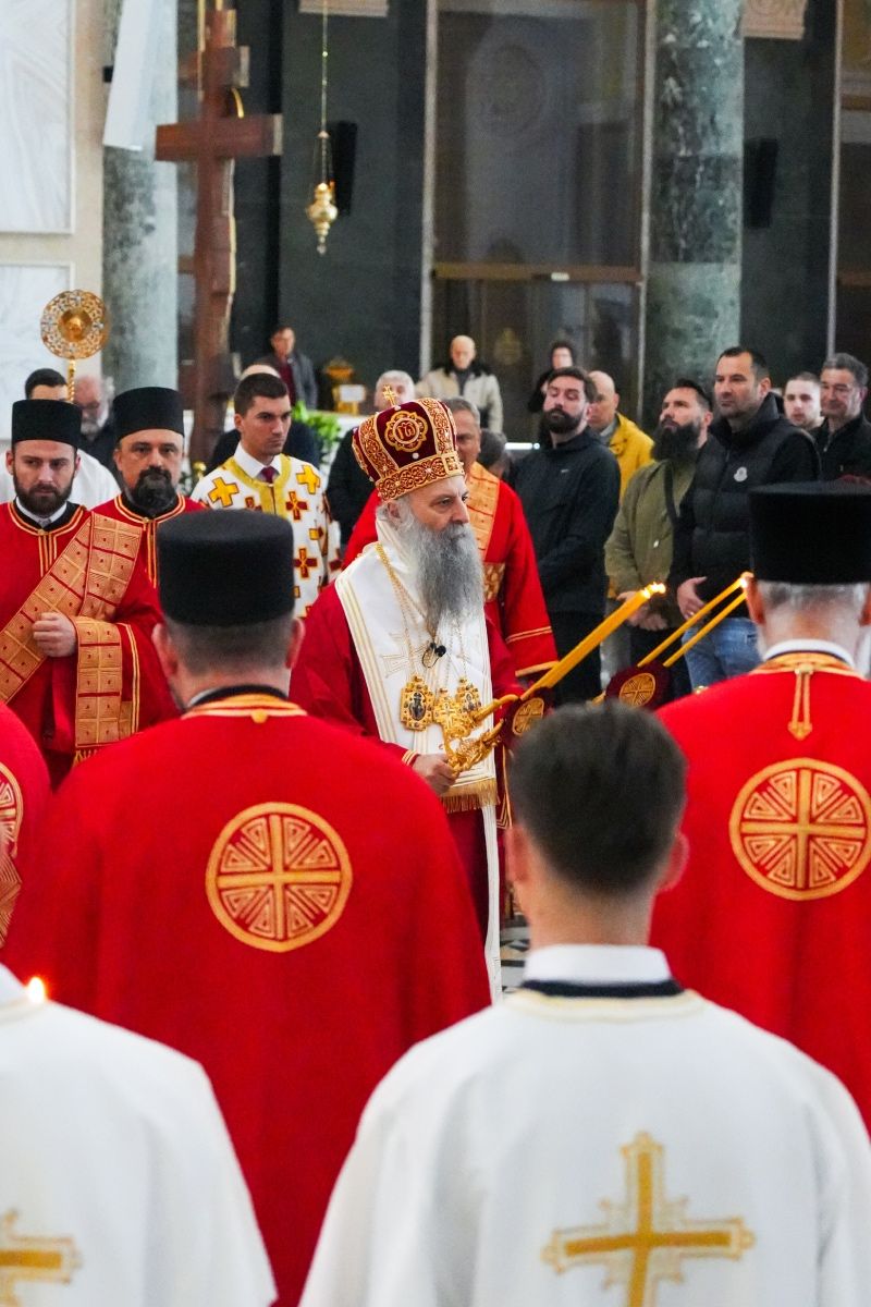 Његова Светост Патријарх српски г. Порфирије је служио на Велики четвртак, 9. априла 2026. године, свету Литургију у храму Светог Саве на Врачару.