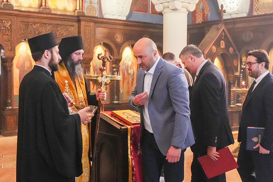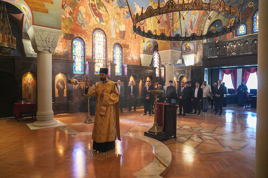 Седници је предходио чин призива Светог Духа који је, у Придворном храму Светог Симеона Мироточивог, служио Преосвећени викарни Епископ новобрдски г. Иларион, уз саслужење: протојереја-ставрофора др Владимира Вукашиновића, архијерејског намесника београдског; протојереја Ђорђа Стојисављевића, шефа Кабинета Патријарха српског, протођакона Дамјана Божића и ђакона Николе Масникосе.