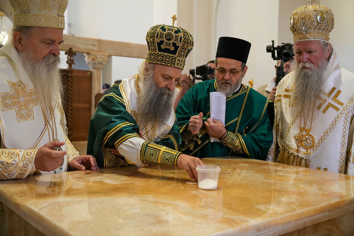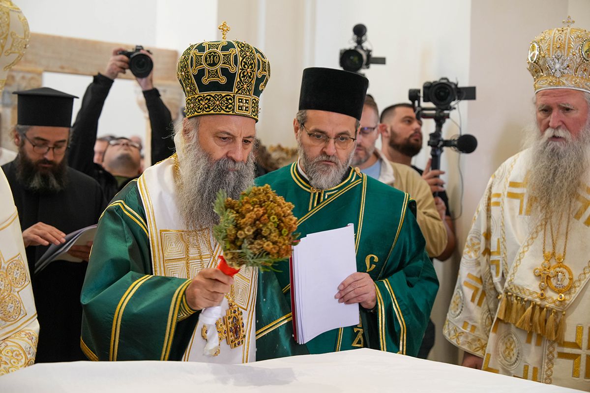 Његовој Светости Патријарху српском г. Порфирију су саслуживали: високопреосвећена господа митрополити црногорско-приморски Јоаникије, жички Јустин, шумадијски Јован, милешевски Атанасије, рашко-призренски Теодосије, крушевачки Давид, тимочки Иларион, нишки Арсеније, захумско-херцеговачки и стонско-приморски Димитрије и будимљанско-никшићки Методије; преосвећена господа епископи бихаћко-петровачки Сергије, ваљевски Исихије, шабачки Јеротеј, мохачки Дамаскин и новобрдски Иларион; као и велики број свештеника, свештеномонаха, ђакона и верног народа Светосавске Цркве.