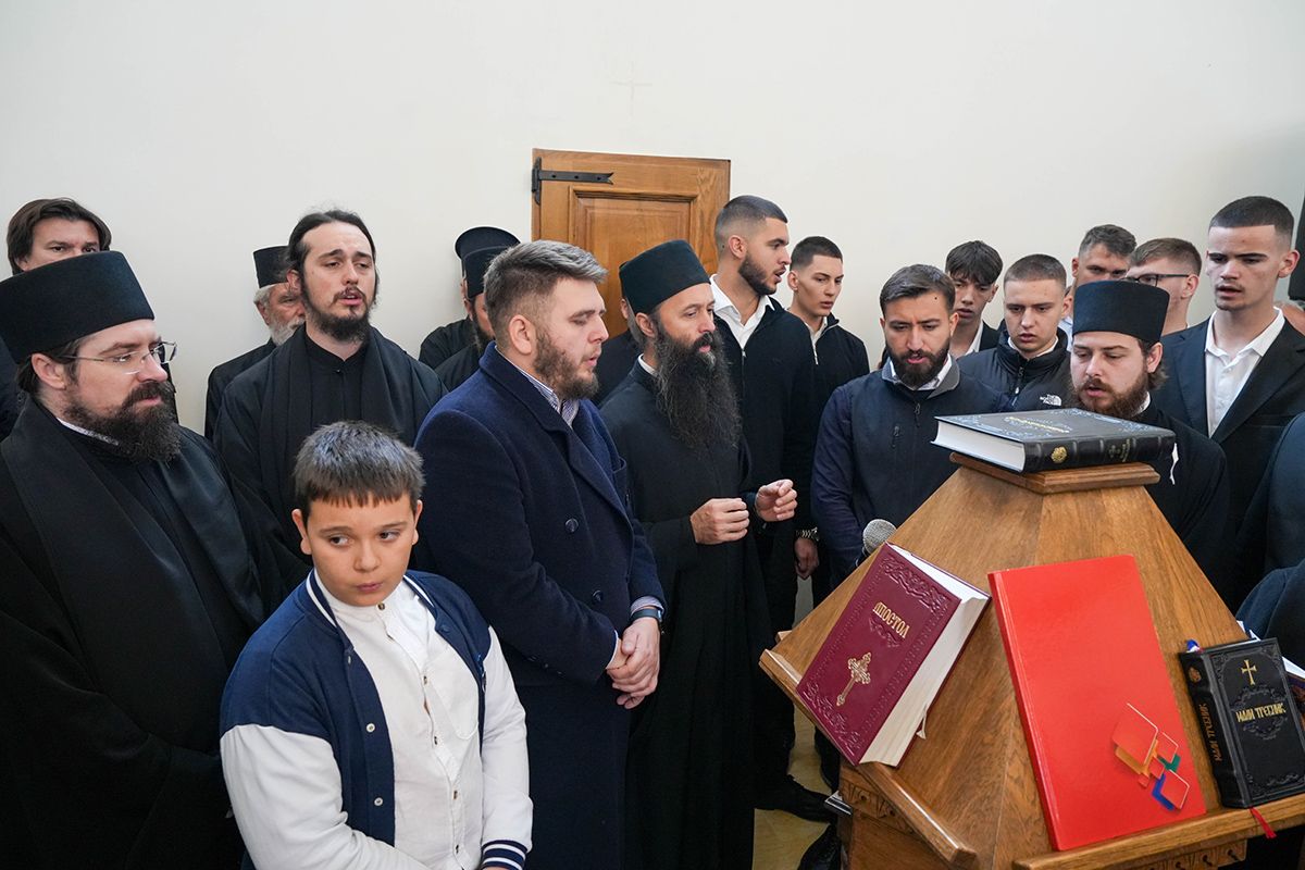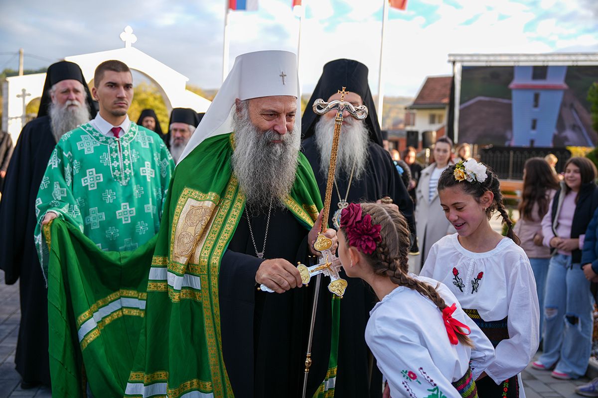 – Ево благослова за све нас! Налазимо се у свом родном месту, јер је овде рођен онај који је нас родио, онај који је нас родио Духом Светим, који нас је родио у Христу и за живот вечни, али и који нас је уобличио као словесни народ, народ који носи на себи печат Христов и реч Јеванђеља Његовог, реч која рађа духовну културу која јесте живот у Христу, културу која је сва умивена Јеванђељем, културу Православља. Живимо речју Светог Саве, јер то значи да живимо Христом, да живимо заповестима Божјим, заповестима које се могу све свести на двоједину заповест о љубави, на заповест о заједници. Заповест о љубави читавим својим бићем према Богу и према ближњем као према самом себи јесте заповест о заједници. То је истовремено и позив да испунимо своје назначење као бића која су створена по слици и прилици Божјој, а то значи као бића заједнице. Честитам свима данашњи дан и данашњи празник и молим се Богу, заједно са свима вама, да молитве Светог Саве учине да разумемо то да је човек створен као биће заједнице, да је Србин створен као биће заједнице, а то значи не биће мржње, не биће искључивости, не биће зла, не биће себичности, не биће самодовољности, него биће љубави, биће светосавско, биће православно, биће Христово.