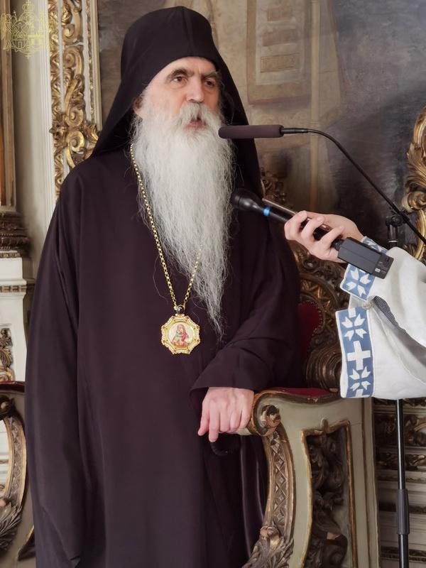 После свете Литургије, сабраном верном народу се обратио Преосвећени Епископ бачки Иринеј, који је заблагодарио архимандриту Методију на служењу и подсетио на духовне, историјске, литургијске везе Хиландара и Свете Горе са Епархијом бачком. Преосвећени владика Иринеј је, између осталог рекао: „Везе наших епархија, некада посебних покрајинских Цркава, посебно међу њима и некадашње Карловачке митрополије са Светом Гором и са Светом Земљом, су веома добро познате из историје, и зна се да су монаси, како Светогорци тако и Јерусалимљани, тада популарно у народу звани и Светогробци, долазили, добијали прилоге за одржање тих наших светиња у веома скрбним, тешким и мучним временима. Дакле, за све нас, као што знате, после поклоњења, поклоничких похода Светој Земљи, Јерусалиму и осталим светињама Свете Земље, одмах је на следећем месту Света Гора. А када било који Србин православне вере одлази на Свету Гору, по правилу, увек, као поклоник долази у Хиландар и ту се напаја светињом и благодаћу и молитвама Светога Саве, светога Симеона и свих светих Хиландараца и Светогораца. Те везе су нераскидиве кроз векове, и данас су нераскидиве. Те везе, историјске, литургијске, молитвене, монашке, изнад свега братске, свих нас са Светом Гором и са светим манастиром Хиландаром, су заиста нешто што треба да нас и радујеˮ, нагласио је Епископ бачки Иринеј.