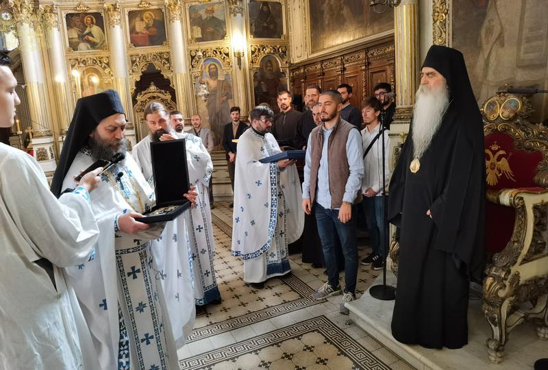 У недељу, 5. новембра 2023. године, у Саборном храму у Новом Саду светом Литургијом је началствовао архимандрит Методије, игуман манастира Хиландара, а саслуживало је свештено братство Саборног храма и јерођакон Харитон, сабрат манастира Хиландара. Светој Литургији је молитвено присуствовао Његово Преосвештенство Епископ бачки др Иринеј. У пратњи игумана хиландарског били су и монаси Теодосије, Симон и Тома.