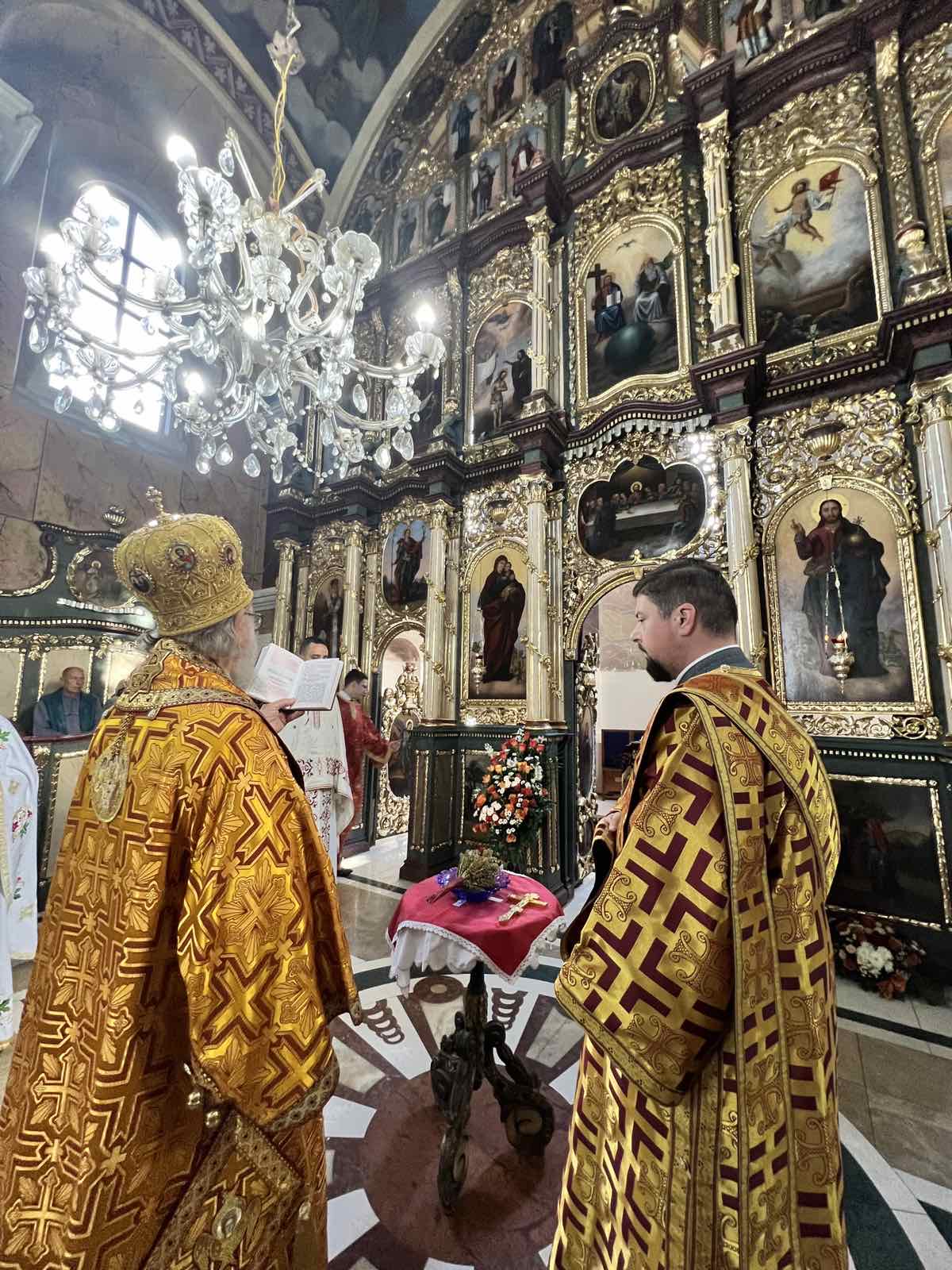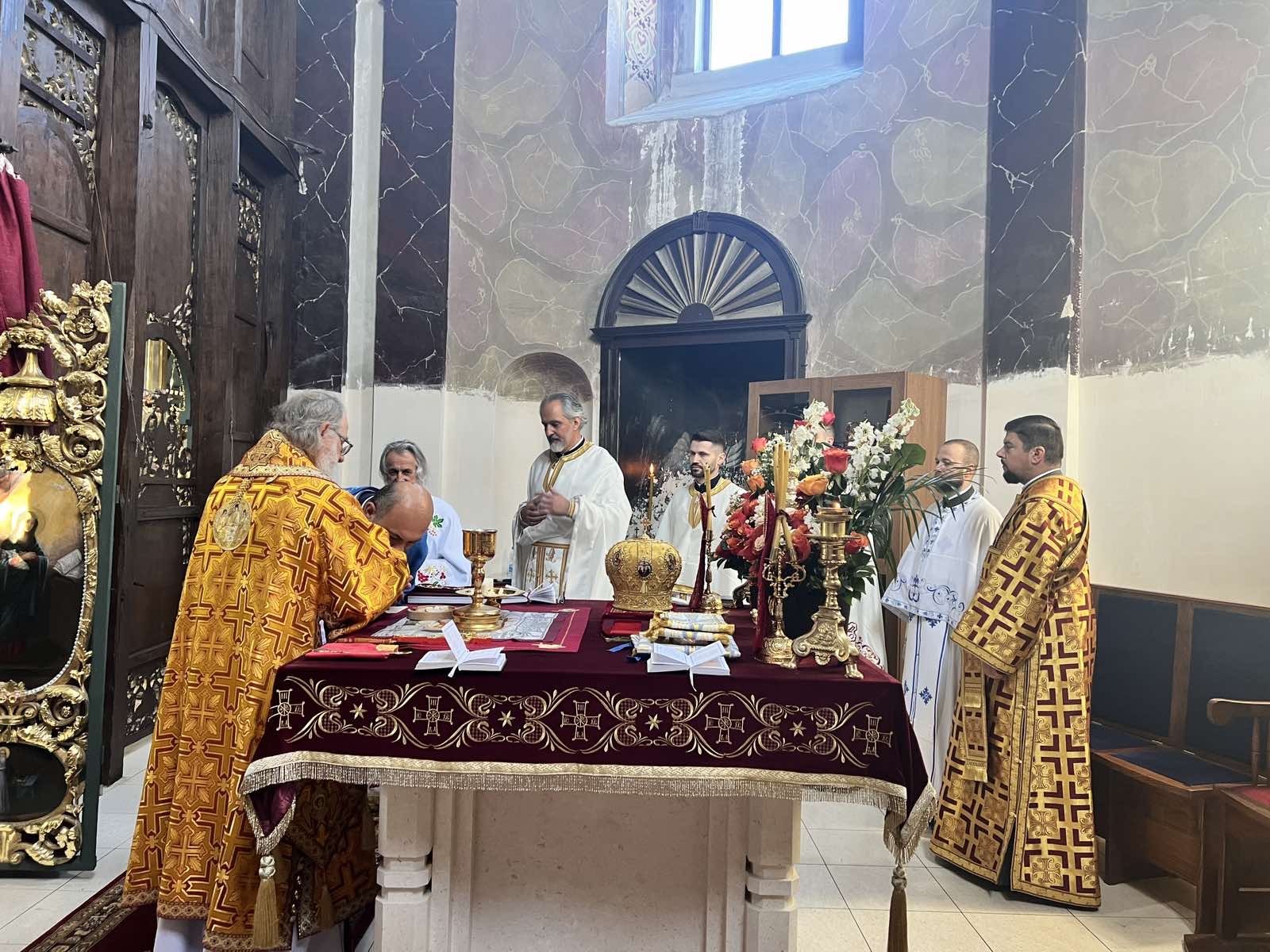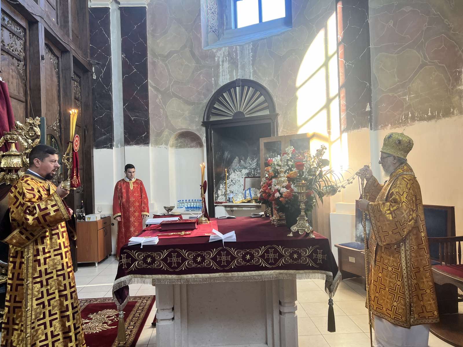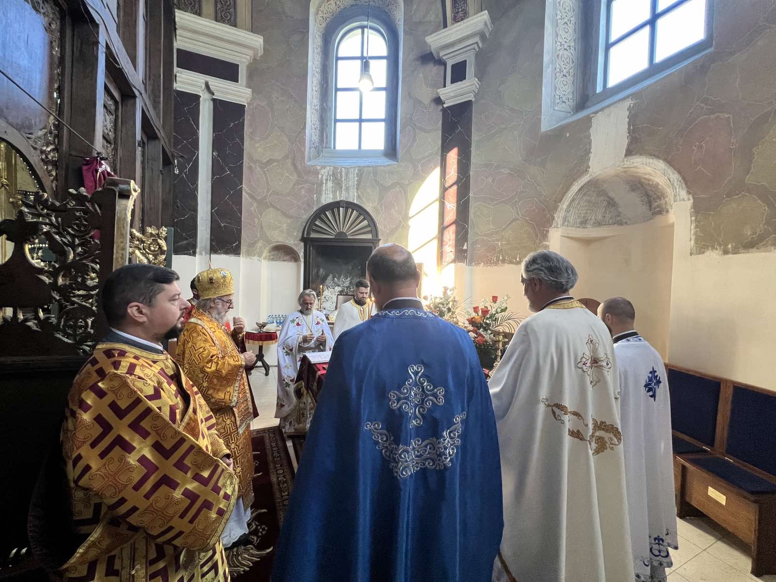 Саслуживали су протојереј Страхиња Голијан, архијерејски намесник земунски; протојереј-ставрофор Илија Цревар, пензионисани парох добановачки; протојереј Милан Алимпић, старешина храма; јереји Јулијан Тодоровић, Владимир Милановић и Божидар Ђенић; као и ђакон Горан Власац. Појали су карловачки богослови. Пре Литургије извршен је чин освећења обновљеног иконостаса, а након свете тајне Евхаристије Његово Преосвештенство је заблагодарио Богу на великом труду верног народа, приложника и свештенства на обнови иконостаса ове светиње Епархијске сремске која је неугасиво кандило вере православне већ 220 година.