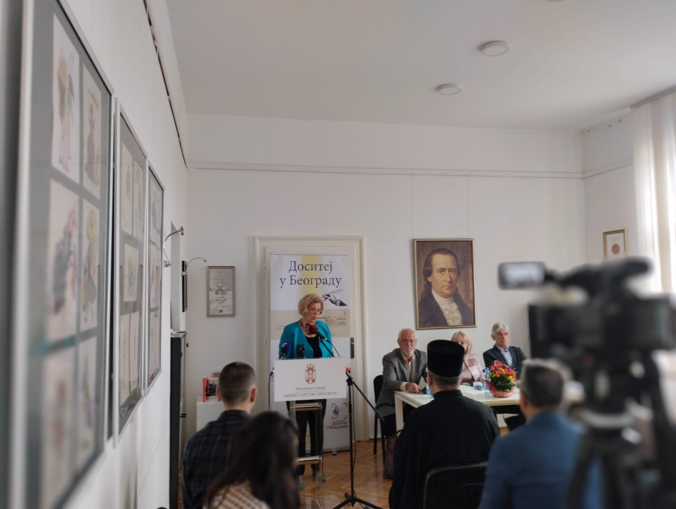 У присуству др Славице Ђукић-Дејановић, министра просвете Републике Србије, уважених чланова Управног одбора Доситејеве задужбине, универзитетских професора, ученика добитника Доситејеве награде за литерарне радове и других гостију, обратио се изасланик Његове Светости Патријарха српског г. Порфирија, протојереј Ђорђе Стојисављевић, шеф Кабинета Патријарха српског: